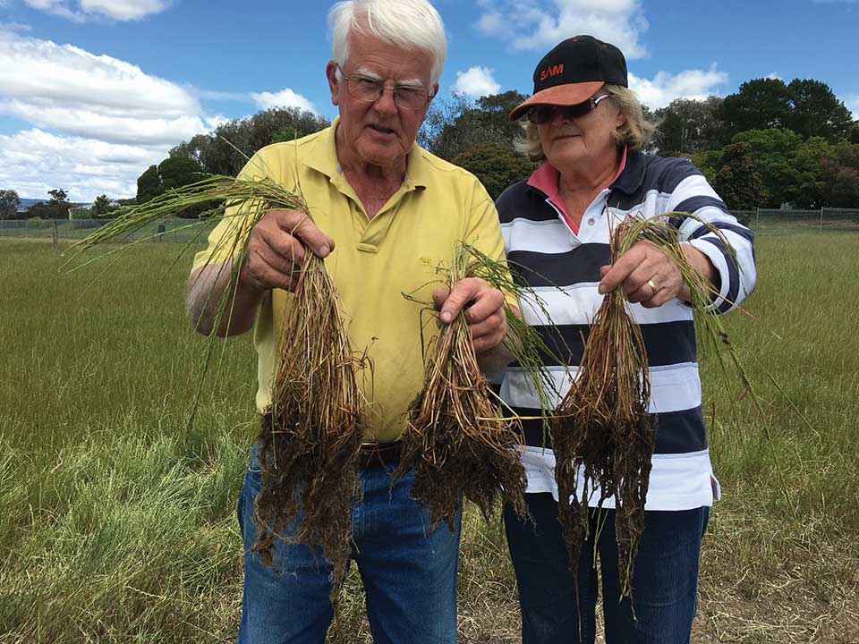 Results at Peter and Meg Johnson’s cattle property Glen Shee showed an exceptionally heavy crop of high-quality annual rye grass on the trial plot where aeration and biological amendments had been applied. Before the trial began in January 2017 the soil profile had high extractable aluminium (which is toxic to plants) and low pH levels. Aeration and biological amendments produced a 116 per cent increase in pasture in one year compared to the control. Peter and Meg Johnson were pleased with the results.